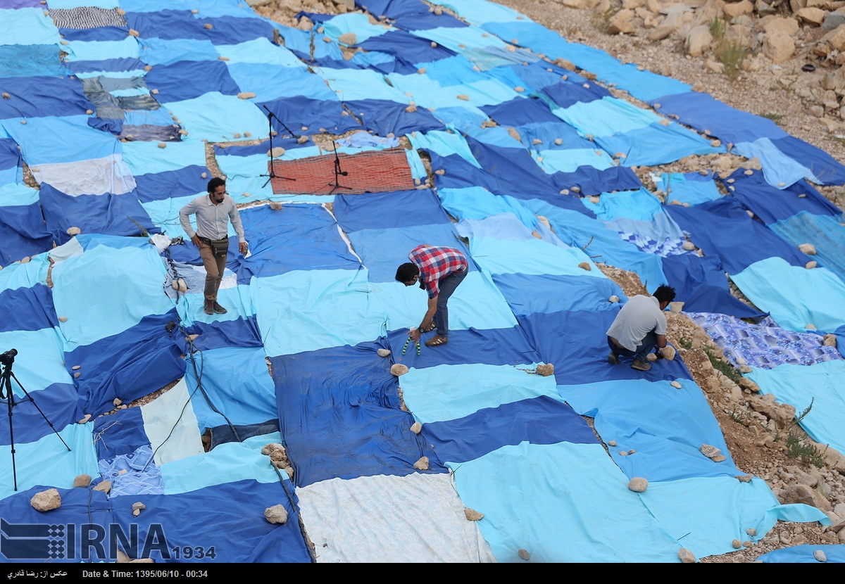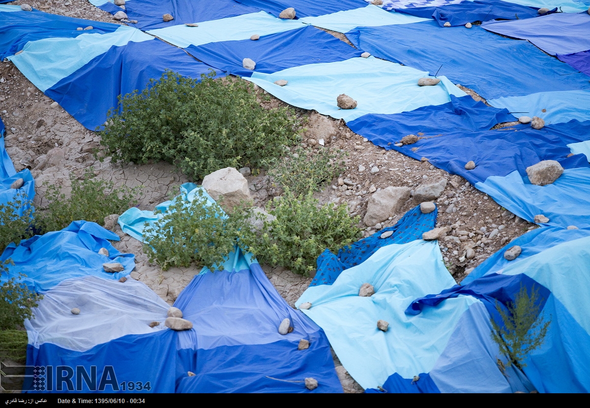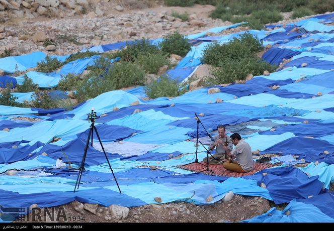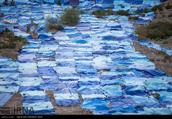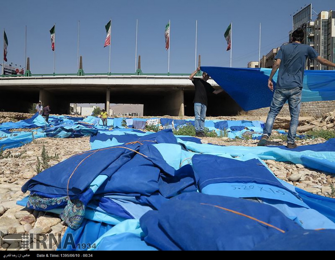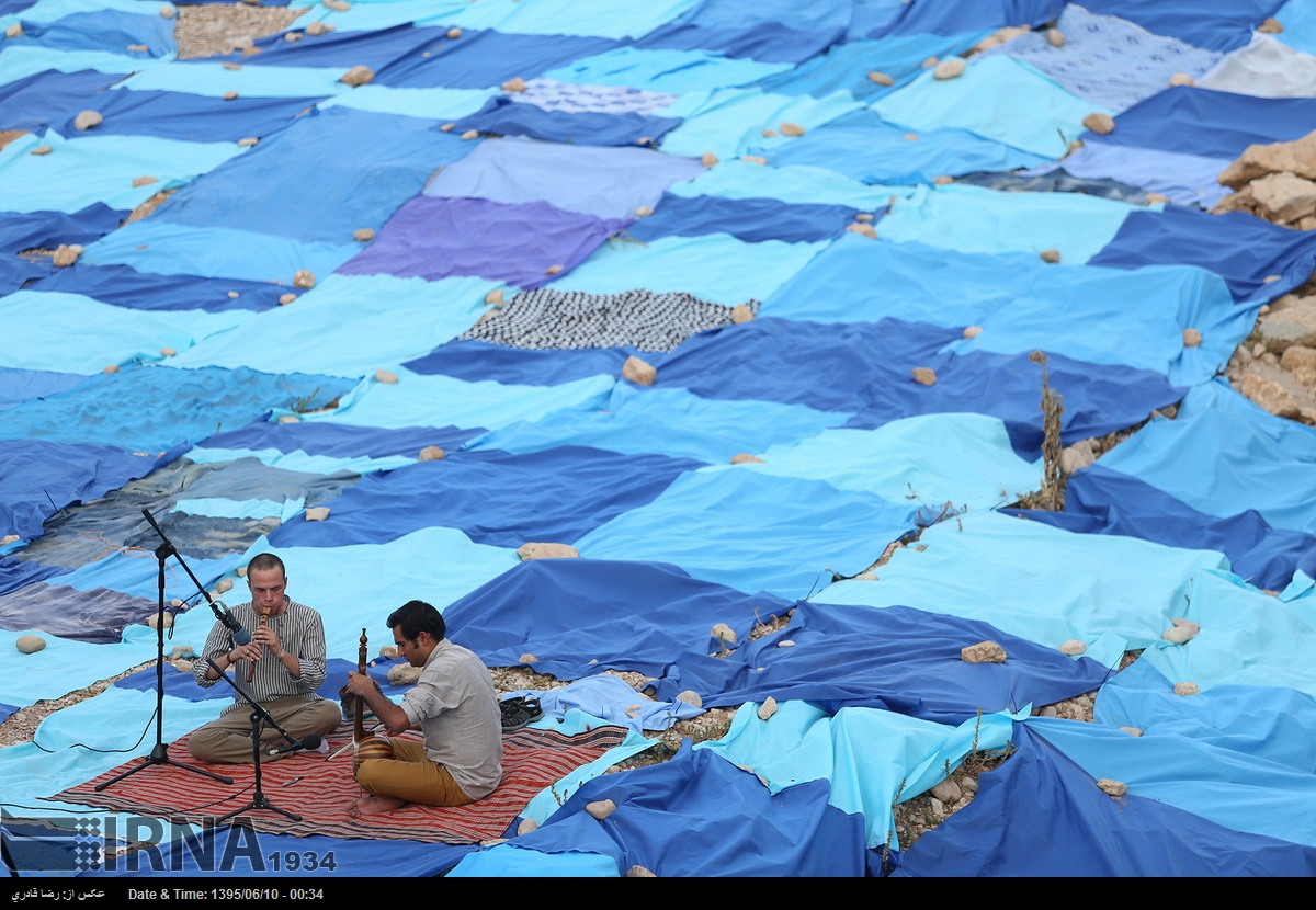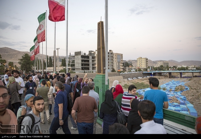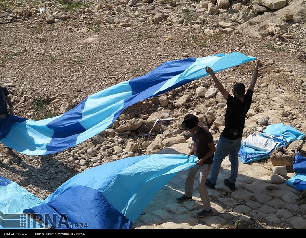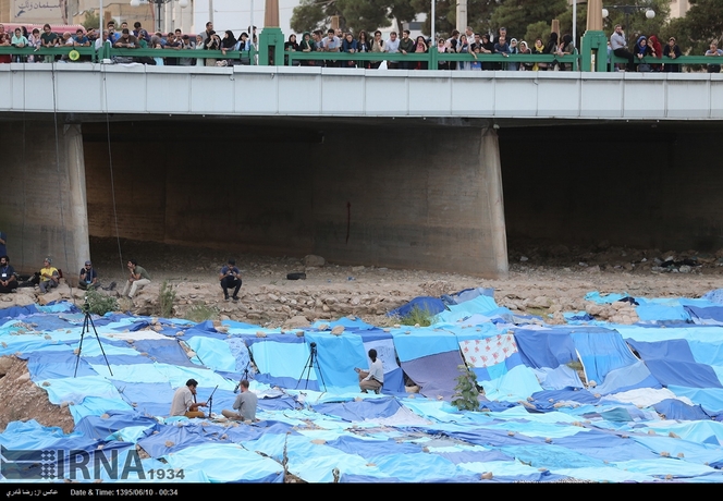 بستر رودخانه خشک شیراز که سال هاست آبی در آن جاری نیست روز سه شنبه با ابتکار گروهی از هنرمندان نگران از بحران آب با پارچه های آبی به رنگ آبی آب در آمد.*