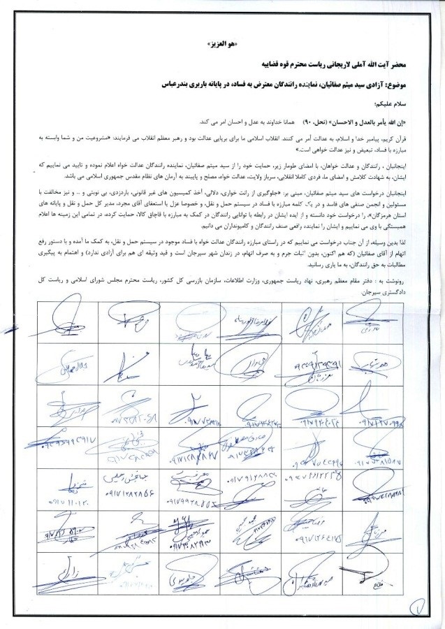در همين راستا دوازده تشكل دانشجويي به «عباس آخوندي» وزير راه و شهرسازي كشور نامه نوشتند و در بخشي از اين نامه تأكيد كردند كه «به استحضار می رساند سید میثم صفاییان به عنوان نماینده جمعی از رانندگان کشور در راستای استفاده از حقوق شهروندی خود که شما بسیار از آن سخن گفته اید به علت اعتراض نسبت به وجود فساد، رانت و رابطه، حذف فضای رقابتی سالم از پایانه های کشور بالاخص پایانه باری بندرعباس که زیر مجموعه وزارت راه و شهرسازی است بازداشت شده است. لذا خواهشمند است که حداقل به اصول لیبرالیستی و حقوق شهروندی که مدتها در وصف آن سخن گفته اید پایبند باشید و ضمن همراهی با رانندگان زمینه رشد آزادی بیان و آزادی پس از بیان، ریشه کنی فساد و تبعیض و ایجاد سیستم رقابت سالم را در پایانه های کشور بوجود آورید...»